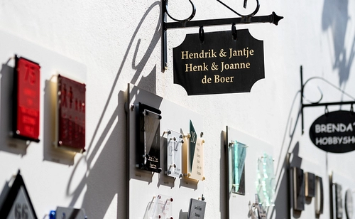 Een uniek naambord of huisnummerbord is een sieraad voor uw gevel. Wilt u een naambord laten maken? Postma en Postma uit Alkmaar heeft meer dan 100 varianten op voorraad.